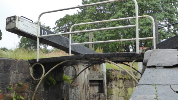 Closed in 1954, for a while in the 1960s and 1970s the canal was dry and it was possible to walk along the bed on each side of the river as well as through the aqueduct itself. The aqueduct was relined, with polythene and concrete and restored, reopening in 1984.