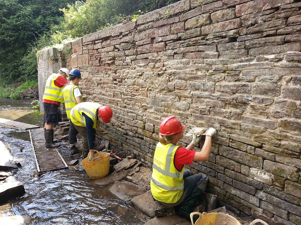The work: A smaller than usual Canal Camp team will work at Clydach Buried Lock to complete the bywash which takes surplus canal water around the newly restored lock itself. The bywash has been lined with concrete blocks, which will now have a stone-facing laid against the blocks.