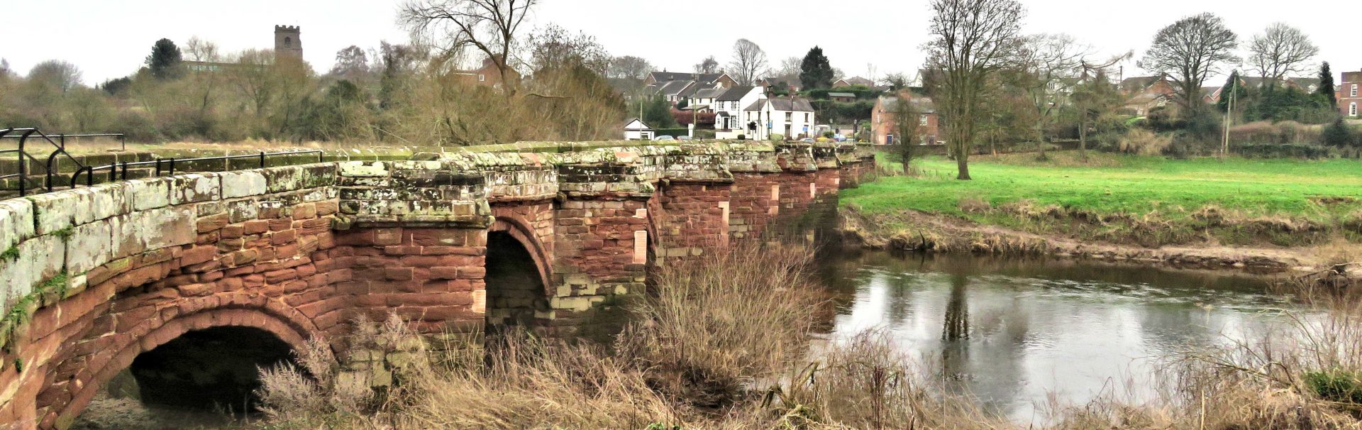[The photo shows the old Farndon Bridge on the River Dee – on an autumn morning.]