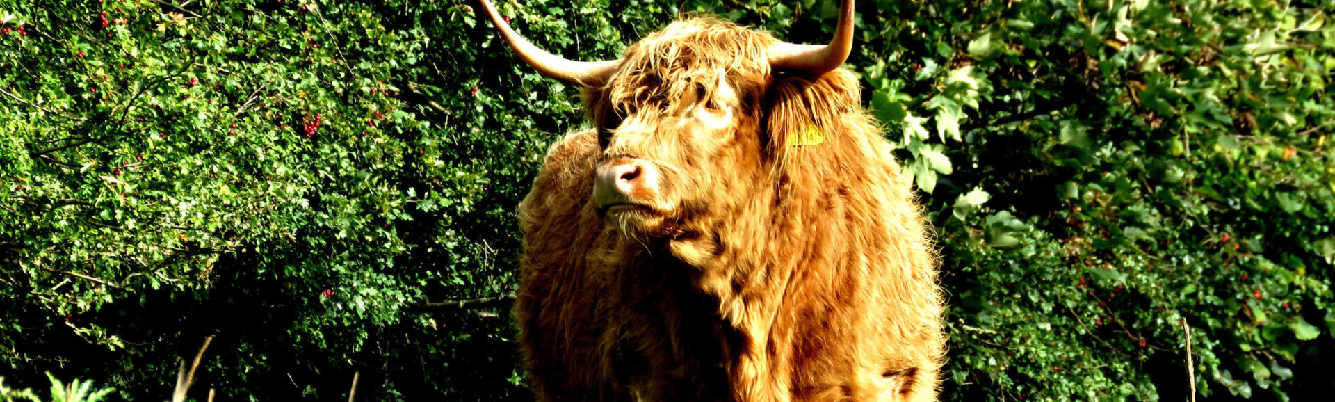 [The photo above shows a highland cow, you may pass close by a herd of them on this walk.]