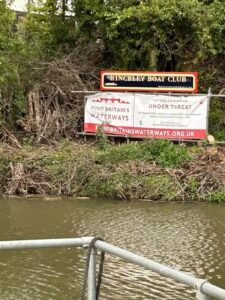 David Brough tells us “This banner has been in a different location [see here] for some months where it could be seen by people in Hayes Town Centre and we moved it yesterday [28th April] so that it could be seen by boaters.” On Tuesday 29th April, it was spotted by one of the boaters in the FBW flotilla heading to IWA’s Canalway Cavalcade the Houses of Parliament, who did an appreciative post on Facebook.