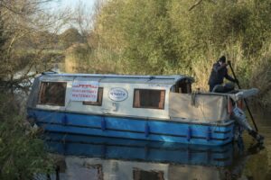 The closure was first highlighted by another Wilderness trail boat cruise in September 2024, also under the Fund Britain’s Waterways banner, when the twelve boats were unable to reach their intended destination of Brandon Town. Since then sandbanks have developed further and three trees have fallen across the river.